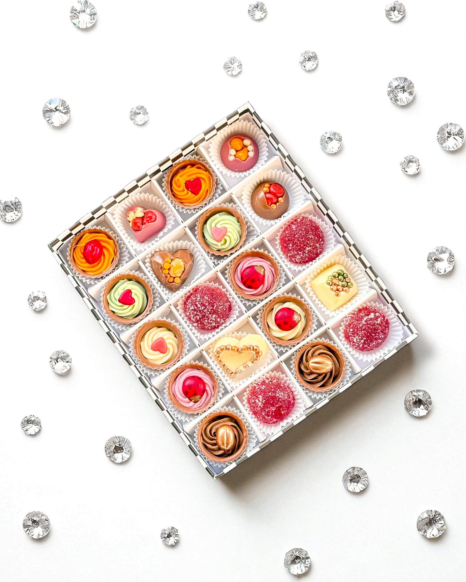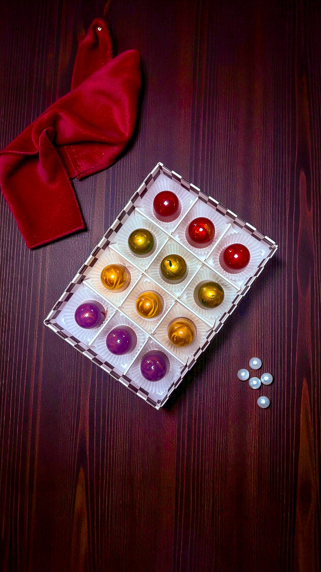 Κάθε σοκολατάκι είναι μια μικρή ιστορία μια χρωματιστή χειροτεχνία που κρύβει μέσα της στρώσεις από βελούδινη σοκολάτα, πραλίνες και υλικά που ισορροπούν ανάμεσα στη φινέτσα και την απόλαυση.